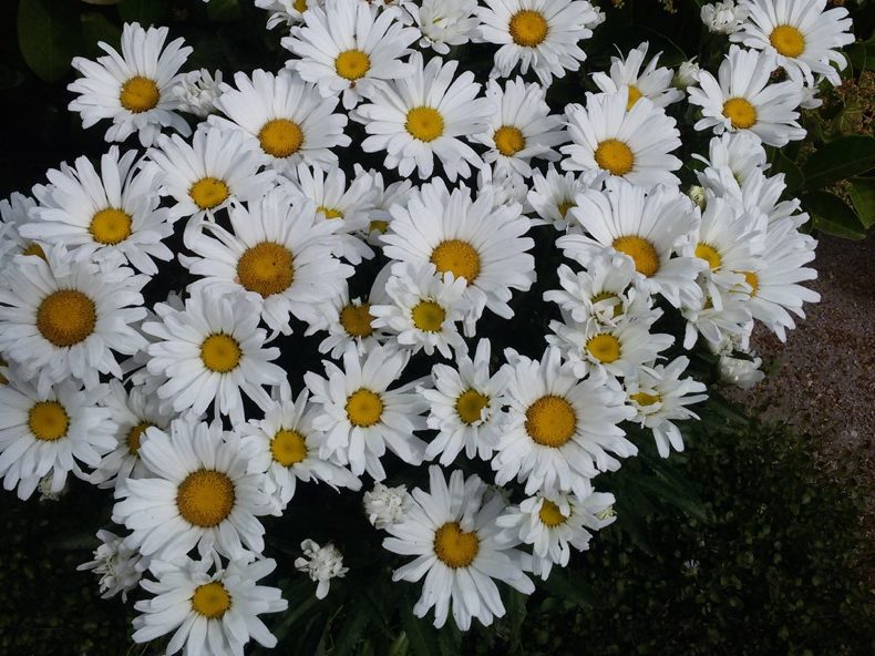 E chi l’ha detto che in giardino tutto debba essere perenne? Tra gli arbusti e le erbacee, c’è posto anche per le coloratissime annuali. Zinnie e Bocche di Leone svettano in seconda fila tra le bordure miste e, alternate alle perenni, in prima fila si trovano anche le infinite varietà di begoniette. Danno il cambio alle viole cornute che hanno portato colore e allegria nelle aiuole e nelle fioriere sul balcone, fino ad oggi. Tra le erbacee perenni di maggiore effetto, in questo mese, un posto al sole lo merita il Leucanthemum maximum, lo straordinario margheritone bianco che illumina le bordure estive.