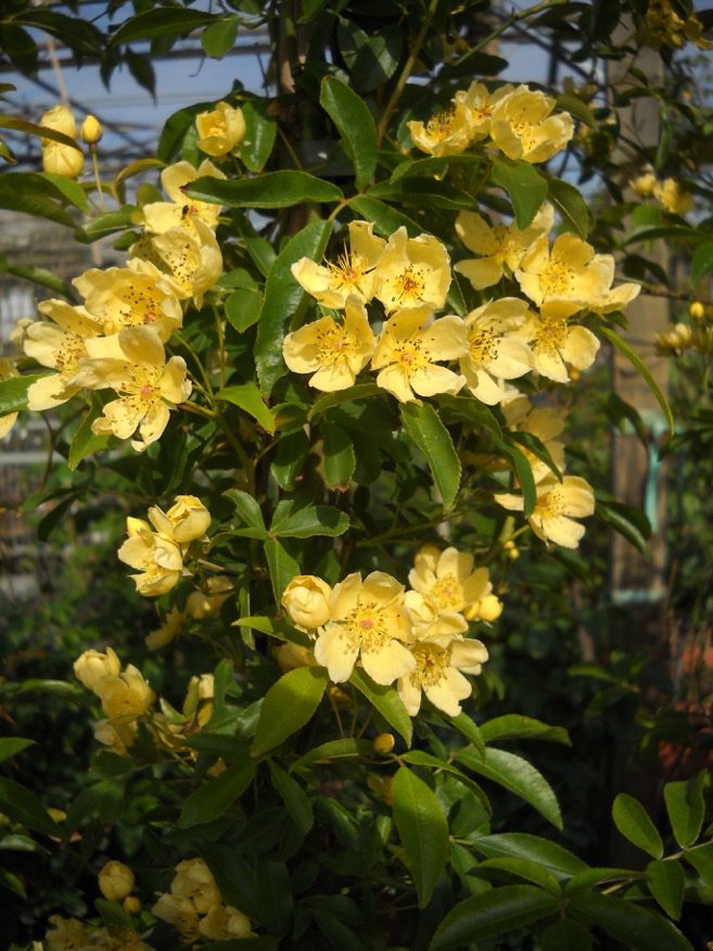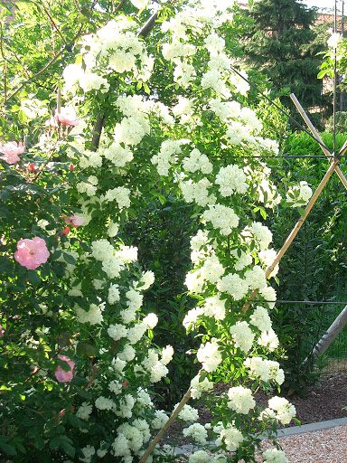 Anche le rose rampicanti iniziano a mostrarsi in tutta la loro travolgente bellezza, le prime a fiorire sono: le rose Banksia nelle varietà Lutea coi piccoli fiorellini gialli doppi; la varietà Lutescens sempre con fiori gialli semplici e l’Alba Plena, col suo immenso bianco immacolato che può raggiungere 10/15 metri di estensione.