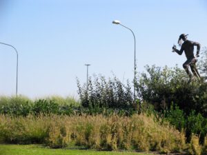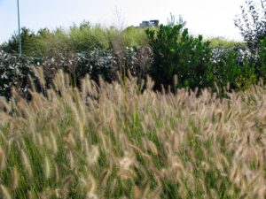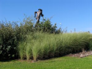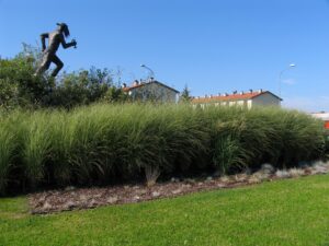 Il Miscanthus, il Pennisetum e la Festuca con le loro movenze che flettono al vento erano ideali per creare quell’effetto movimento capace di far correre realmente la scultura.