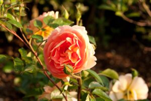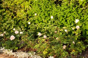 Con l’amore per le rose e i contrasti forti, con porzioni di giardino al sole e altre all’ombra che ci consentono di piantare in libertà e alcune situazioni ed errori edili da mascherare con sapienza attraverso l’uso delle piante.
